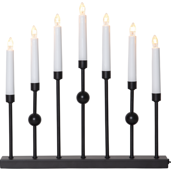 Stilren metalljusstake i svart. Ljusstaken har 7 ljuskällor med mysigt sken. En dekorativ ljusstake att ha i hemmet.