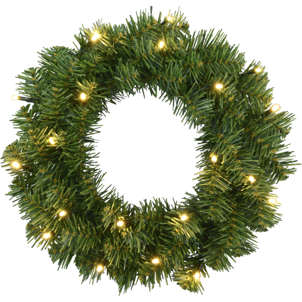 Batteridriven krans med 20 varmvita LED-lampor. Kransen ger ett fint och inbjudande sken i mörkret. Den inbyggda sensorn tänder kransen när det blir mörkt och släcker den när det ljusnar.