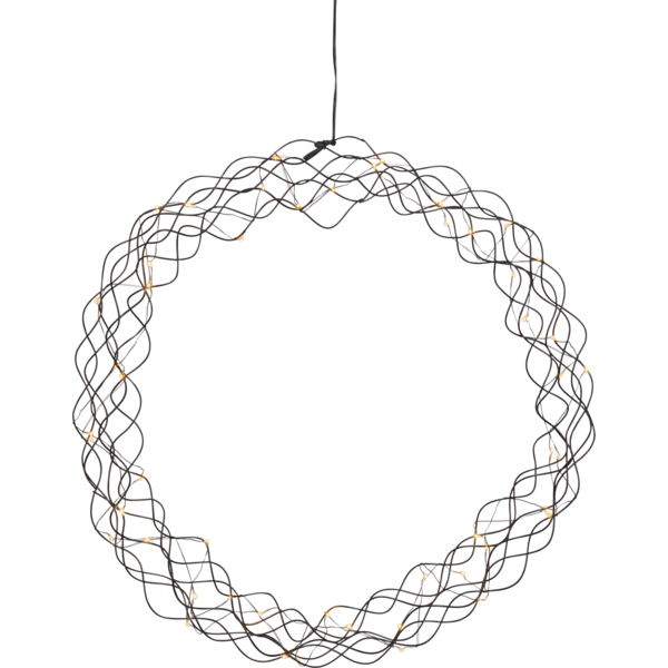 Dekorativ krans i svart med dew drop ljusslinga för inomhusbruk. Kransen har 50 LED-ljuskällor med varmvitt sken. Vacker dekoration att ha i fönstret och på väggen.