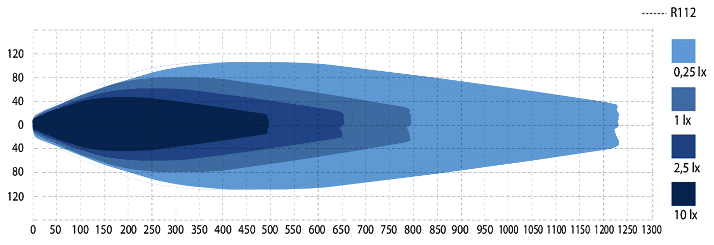 - Rækkevidde: 1 lux @ 790 m/R112: 1 lux @ 460 m