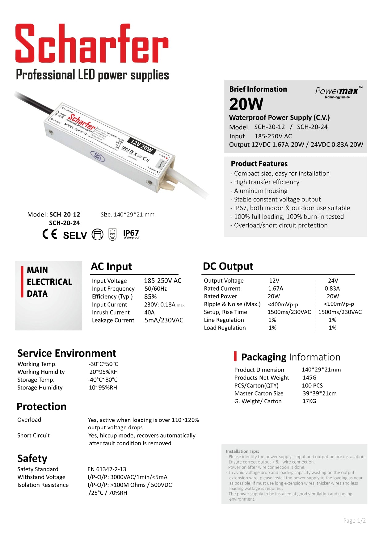 Oplev den nyeste strømforsyning med vores IP67-klassificerede transformer. Den konverterer 185-250V AC til en pålidelig 12V DC med 20W og 1,67A, og dens aluminiumshus giver ikke kun robusthed, men også effektiv varmeafledning. Perfekt til udendørs brug og marine miljøer. Kompakt design og nem installation. Power LED-belysning og andre enheder med pålidelig og kraftig strøm. Invester i dine elektroniske enheders ydeevne og sikkerhed!